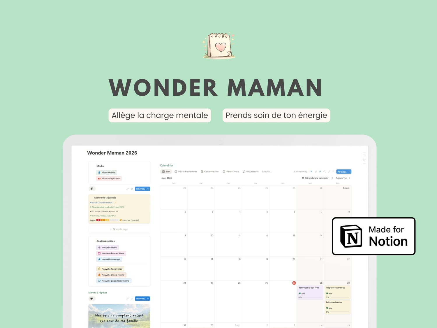 Les templates Notion pensés pour les mamans qui veulent arrêter de survivre et recommencer à vivre 🍃
